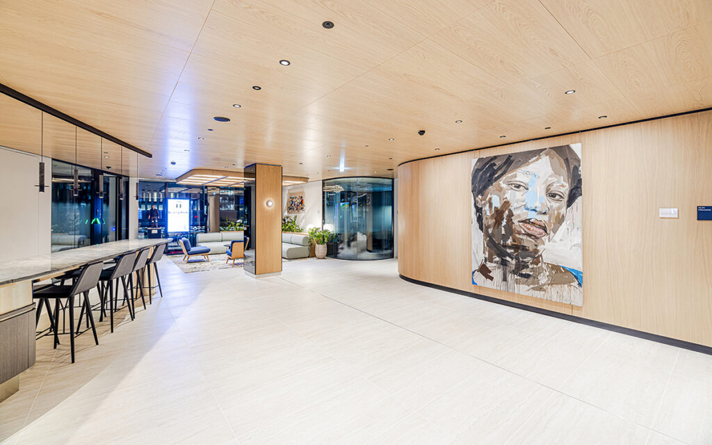 LSA worked with M Moser Architects and BPC Interiors to deliver the acoustic ceiling at the client suite areas at Standard Chartered Bank at 1 Basinghall Avenue, in 2024. The design brief required a high-performance acoustic ceiling with some visual texture and character that would work elegantly alongside the minimal aesthetic of the front of house space.